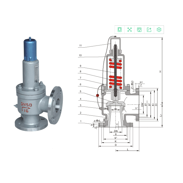 A42F全啟式液氨安全閥,全稱:彈簧全啟封閉式液氨安全閥,屬于彈簧封閉式結(jié)構(gòu),主要依靠彈簧的作用力而工作,安全閥的主要參數(shù)是排量,這個(gè)排量決定于閥座的口徑和閥瓣的開(kāi)啟高度,全啟式是指閥瓣的開(kāi)啟高度為閥座喉徑的¼。液氨安全閥有帶扳手和不帶扳手的,帶扳手的作用主要是檢查閥瓣的靈活程度,有時(shí)也可以用作手動(dòng)緊急泄壓用。