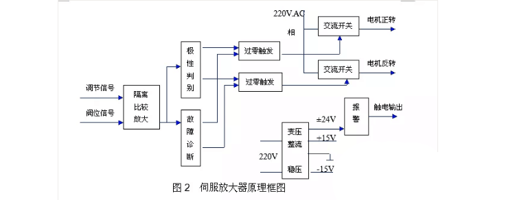 在自動控制系統(tǒng)中,這些執(zhí)行機構(gòu)需要外掛式的伺服放大器進行開關(guān)控制。電動執(zhí)行機構(gòu)的指令信號與閥位反饋信號在伺服放大器中進行比較放大后,經(jīng)過可控硅送出220V的開關(guān)信號。伺服放大器是由電器元件組成的電子線路板構(gòu)成,分前置級磁放大器線路板、觸發(fā)器線路板、可控硅交流開關(guān)線路板三部分。電動執(zhí)行機構(gòu)的指令信號與閥位反饋信號的比較放大靠這些電子線路板的運行來實現(xiàn)。
