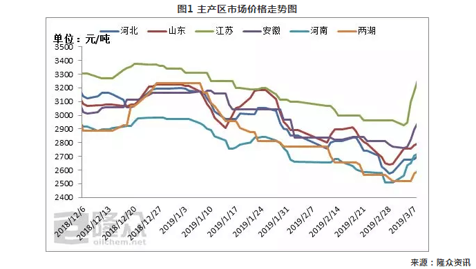 春節(jié)以后,氨市低谷運(yùn)行,霧霾天氣的預(yù)警以及雨雪天氣的持續(xù),對農(nóng)需方面影響頗大,化肥企業(yè)出貨壓力較大,開工低位,庫存高位,導(dǎo)致采購積極性不高,氨市一度走弱,不過自2月底3月初以來,各生產(chǎn)企業(yè)調(diào)整生產(chǎn)結(jié)構(gòu),縮減商品氨量,據(jù)隆眾資訊統(tǒng)計,近一周時間縮減約12000噸的量,扭轉(zhuǎn)熊市局面,一周時間市場大步上揚(yáng),幅度80-330元/噸。