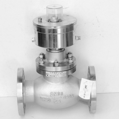 閥門平常處在關(guān)閉狀態(tài),與壓縮空氣或氮氣儲罐配套使用,在裝泄作業(yè)時,通過0.4~0.5MPa氣源壓力進(jìn)入氣缸下腔,壓縮彈簧力,推動活塞上升,閥門開啟,排空氣源壓力,閥門關(guān)閉。
