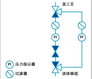 旁通回路是一種略微復(fù)雜的配置,不僅可以隔離維護(hù)中的流體系統(tǒng)管路,還可以改變流體的輸送路線,以便該工藝在維護(hù)期間繼續(xù)運(yùn)行。
