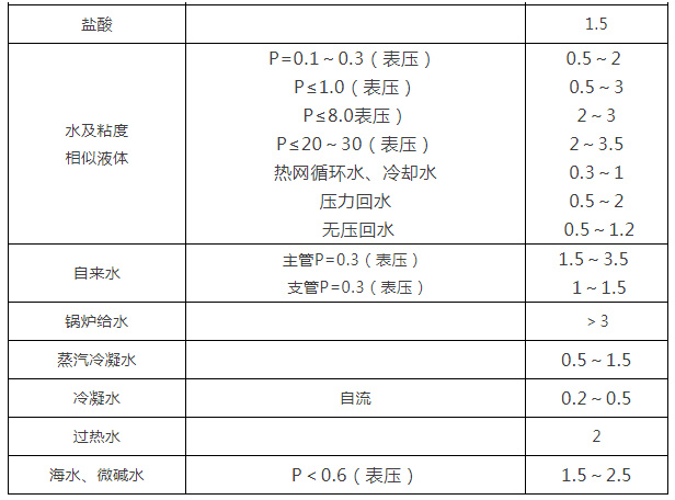 各種介質(zhì)常用流速一覽表