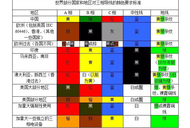 3、附表:各國三相導(dǎo)線顏色要求標(biāo)準(zhǔn)