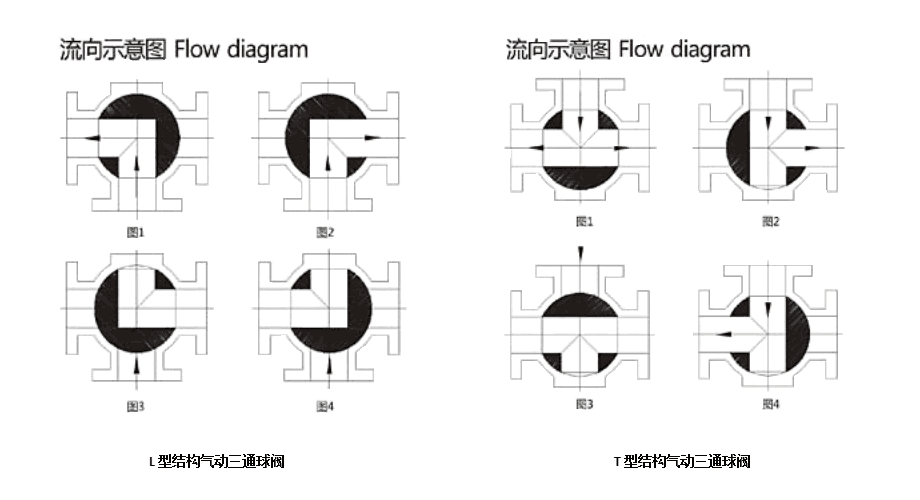 氣動(dòng)三通球閥流向示意圖