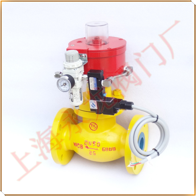 氣動站用切斷閥 Pneumatic standing with a shut-off valve屬于常閉式氣動截止閥 Pneumatic cut-off valve,采用直行程活塞式執(zhí)行器,在執(zhí)行機構(gòu)裝置高溫熔斷裝置,當工況環(huán)境溫度超過易熔合金塞(75±5℃)設(shè)定的溫度,易熔合金塞熔解,氣源壓力從排氣孔排出降壓,切斷閥通過儲罐介質(zhì)的壓力及彈簧的張力,快速截斷管道氣體/液體介質(zhì)的流體,防止火災(zāi)事故的發(fā)生。